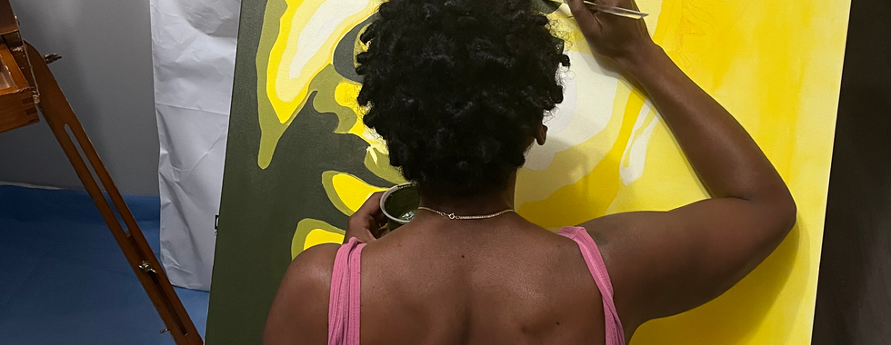 This work, titled creatHER: constructing the Black Woman, is a tapestry woven in strength, adorned with tears, tasseled with the history of racism and sexism, and ultimately, drenched in Black radiant feminine energy. This is my first collective body of work and also my first exploration of larger canvases. I opted to challenge myself to go bigger while also reminding myself that this conversation is bigger than me.